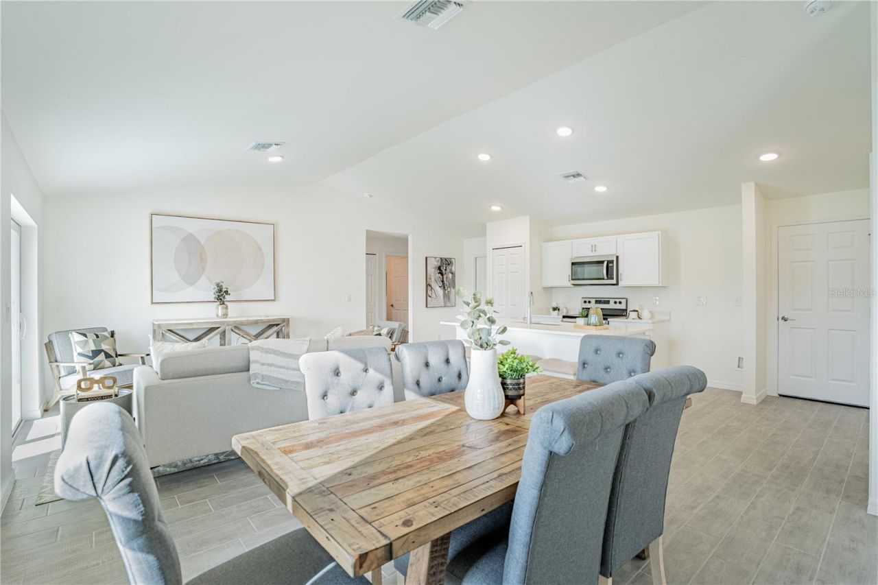 Under Construction. NEW BUILD - Anticipated completion date is JUNE 2026. SPECIAL INCENTIVES: 4.75% fixed rate FHA/VA financing with $5K closing cost assistance OR 3.99% FHA/VA 5-YEAR ARM + UP to $10K in closing cost assistance/ prepaids OR UP to $20K toward closing cost when using a preferred lender. The 1,426 -square-foot (air-conditioned) Windsor plan boasts a well-designed open floor plan that includes four bedrooms, two bathrooms, and a two-car garage. The kitchen boasts upgraded 30 contemporary shaker-style cabinets, a spacious kitchen island with upgraded quartz countertops, Whirlpool dishwasher, microwave, and range, refrigerator, washer & dryer. The Kitchen overlooks a spacious great room that features beautiful tile-plank flooring and vaulted ceilings. The expansive owner's suite features a private bathroom, with a separate linen closet, and large walk-in closet. The three guest bedrooms share a guest bathroom and are located opposite the owner's suite. The Windsor also features a decorative brick paver driveway, a professionally designed landscaping package, and designer-selected paint colors, light, and plumbing fixtures, impact resistant windows and doors.