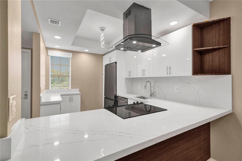 Just listed! Meticulously upgraded 2BR/2BA residence plus a dedicated private office, perfect for remote work. This modern oasis features a designer kitchen with dual-tone cabinetry, stainless steel appliances, an island range hood, and a custom coffee/wine bar. Interior highlights include 6-inch baseboards, integrated LED chrome pendants, and a primary suite with marble countertops and a 2-jet high-pressure shower tower. Relax on the enclosed balcony with serene golf course and canal views-balcony furniture and wall-mounted TV stay for tenant use! Rent includes: Water, sewer, trash, basic cable, and pool/clubhouse access.